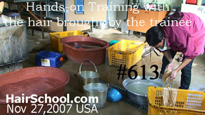 | Human Hair Processing & Coloring training at WigSchool focuses on real manufacturing workflows, including raw hair preparation, bleaching, dyeing, color correction, conditioning, and industrial finishing techniques used in professional wig production. |