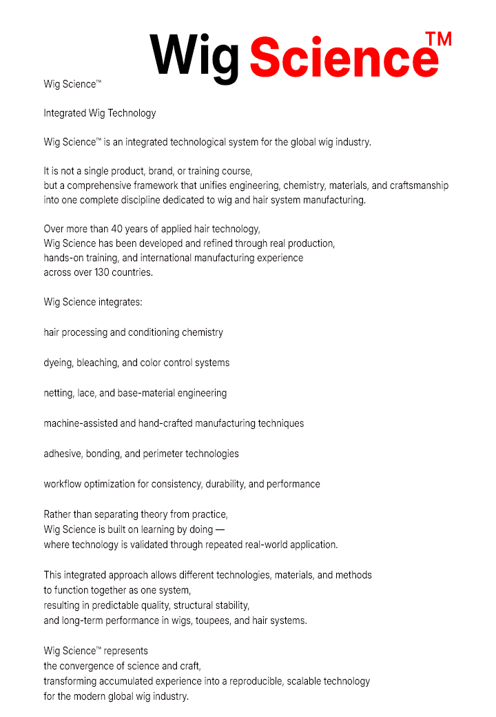 courses for manufacturing Wefts, Wigs, Toupees, Hair Extensions,