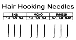 NEEDLE FOR HAND TIE ON COARSE NETS Available Styles: 5-6 hairs, 7-8 hairs are available. R/MESH 5-6 hairs used in have 5 or 6 strands of hair knotted at a time (in mainly sides and back of a full wig) for saving production time and cost |