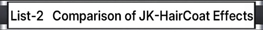 More importantly, JK-HairCoat creates an effect strong enough that customers are willing to return for re-conditioning every 1, 3, or 6 months, which is commercially very important.
